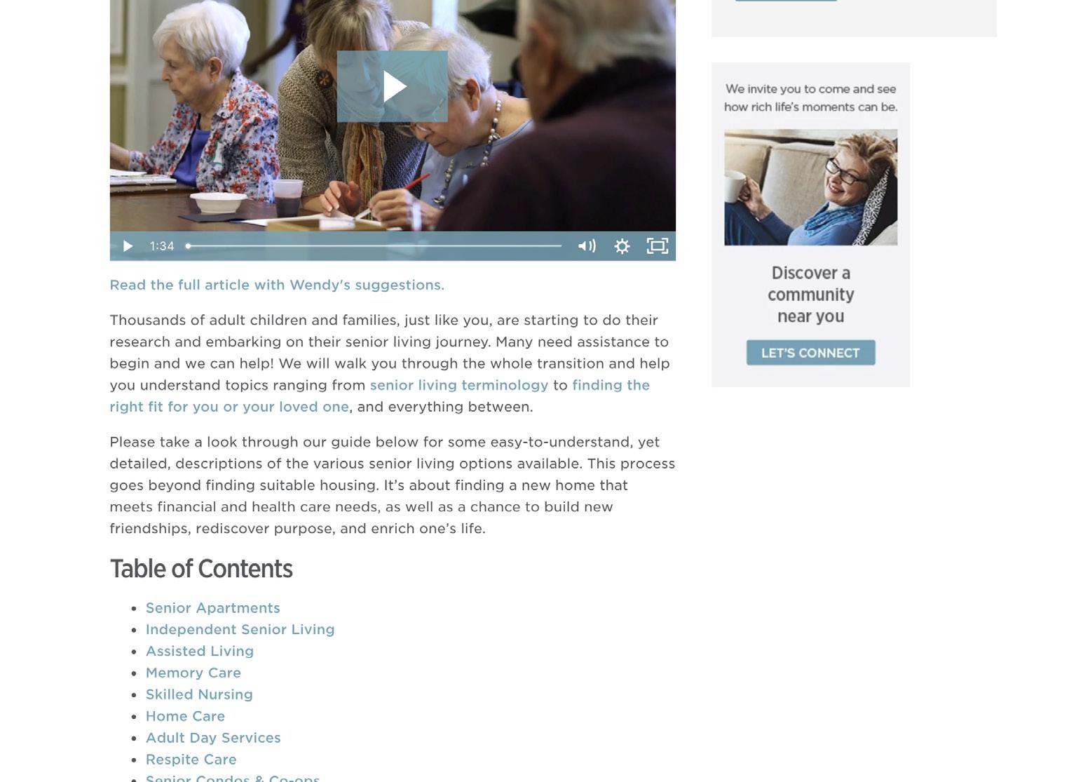 learn, connect and engage with others. When selecting a senior living community for yourself or your loved one, the first step is