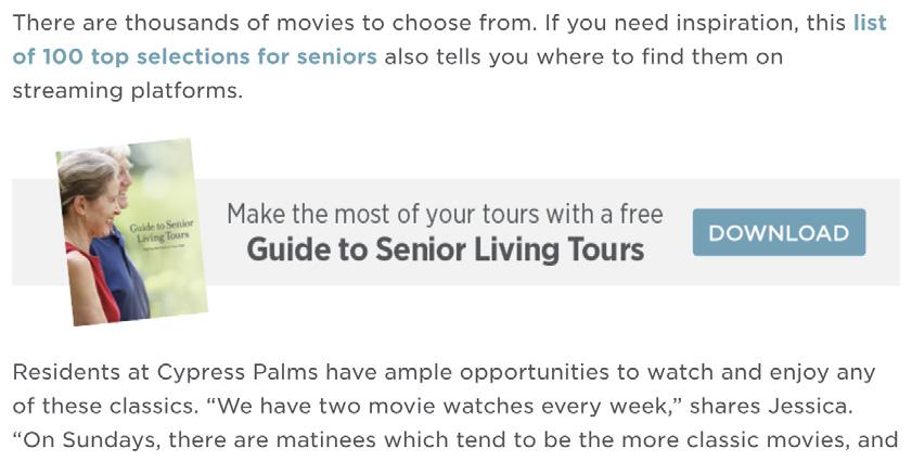 make the most of your tour, we invite you to take advantage of our to Senior Living Tours.
