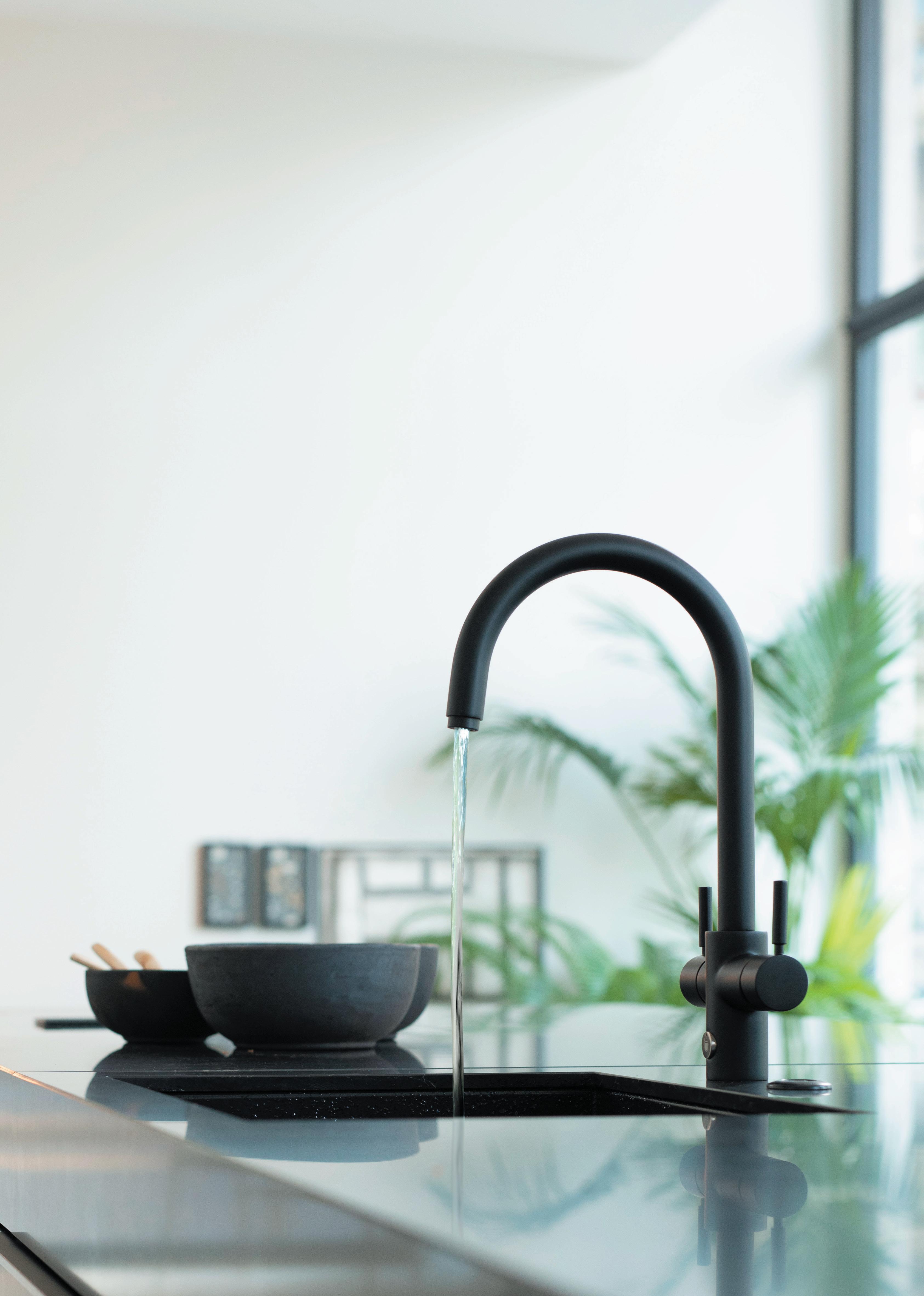 Ultimate connectivity. PureH2O™ water purifiers install with a dedicated pure water fucet. For the ultimate lifestyle enhancement, they connect to the Quatreau® range of multifunction touchscreen 5-in-1 kitchen taps (purified and thermostatically controlled boiling, chilled and sparkling water, plus mains hot and cold) and compact drinks stations.