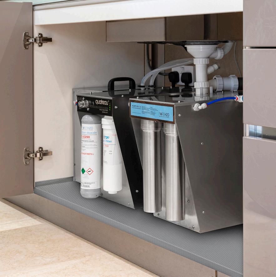 Ultimate sustainability. PureH2O™ and Quatreau® combine to deliver the most sustainable way to enjoy sparkling and chilled water, with maximum water and energy efficiency, zero plastics pollution, air miles or resource depletion. PureH2O™ water purifiers also connect to steam ovens, fridges, coffee machines and the HydreauBar™ smart bottling and refill station. The purifiers’ 316 stainless steel storage tanks reduce plastics by 90% compared to other systems, further enhancing their sustainability.