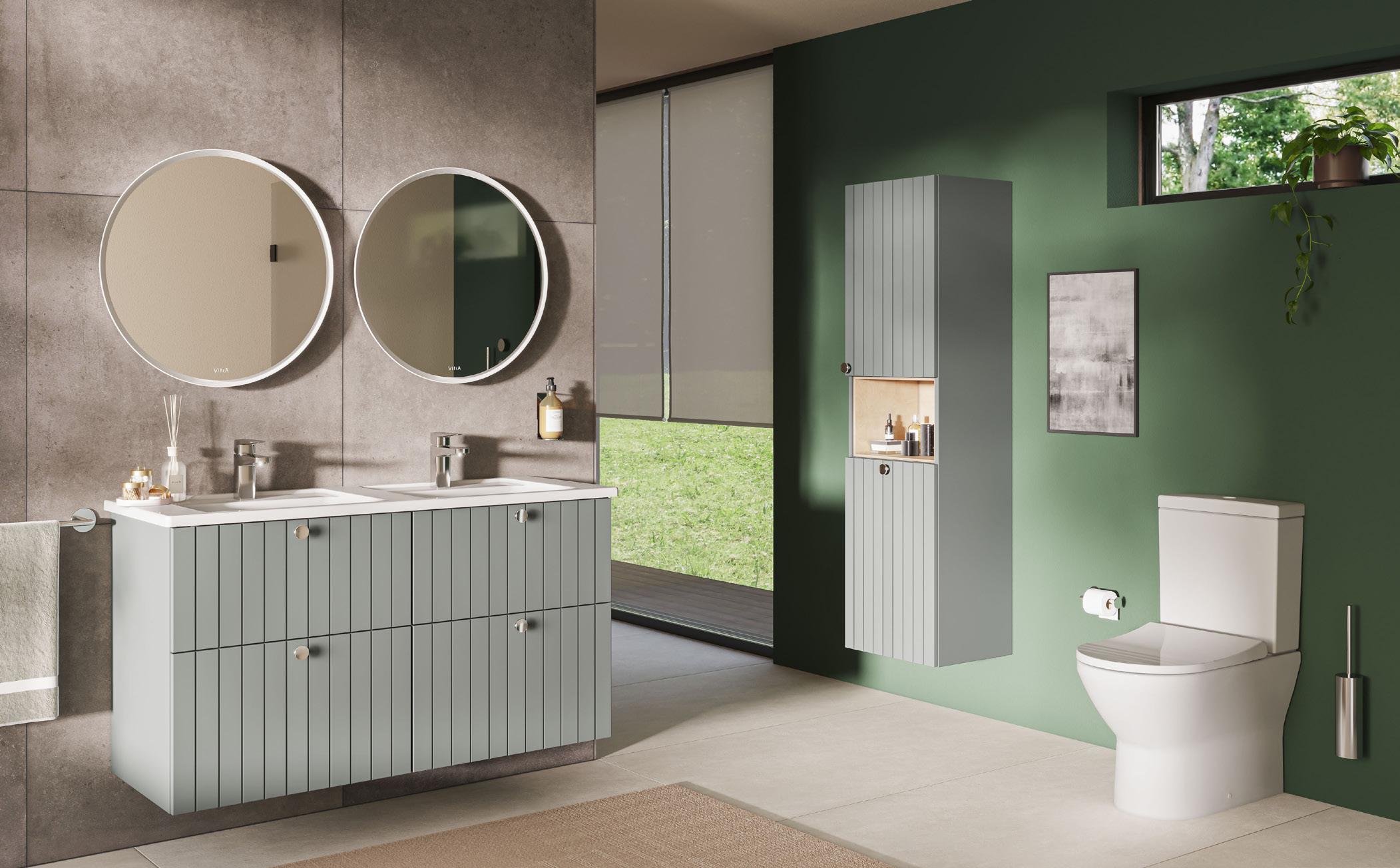customisable bathroom collections. The range comprises three key furniture designs: flat, groove and classic. Flat is a simple style for those with a minimalist taste. Groove is a contemporary option with a panelled style, and Classic is a modern take on shaker design. Straight-forward design, soft lines and smooth surfaces keep cabinet surfaces dirt-free and easy to clean. The furniture joins the Root brassware collections Root Round and Root Square, available in five colours (chrome, brushed nickel, copper, matt black and gold) across the array of basin, bath, and shower mixers. The Root furniture units are paired with VitrA's popular Zentrum, Integra and new Integra Classic washbasins to cover every design requirement.