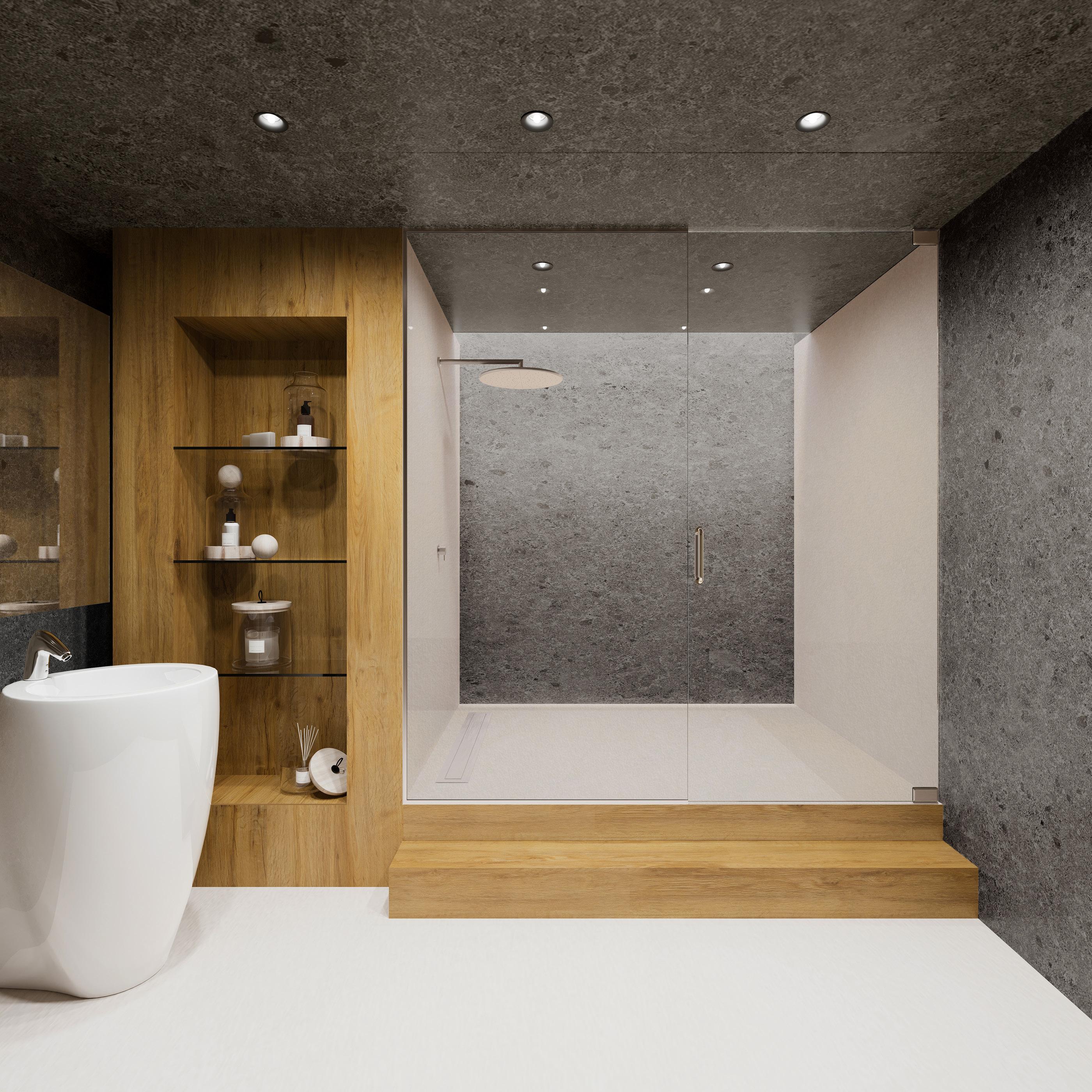 of 360° design, the inner core and outer surface are fully integrated to ensure visual continuity between the two. The 3.2m large format surfaces enable floor to ceiling cladding with no horizontal joint lines, for a clean, modern design. With over 30 finishes to choose from you can create almost any look for your bathroom or wet room.