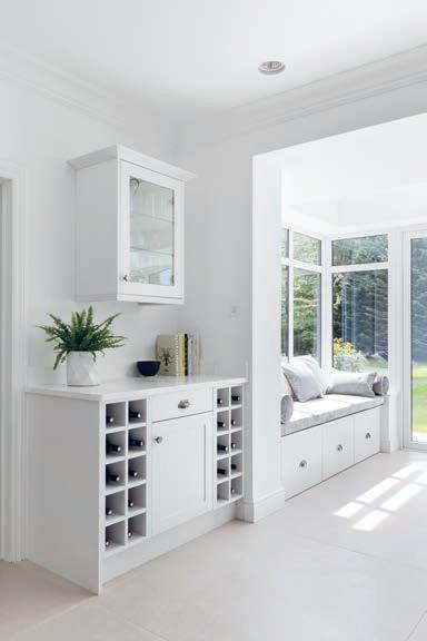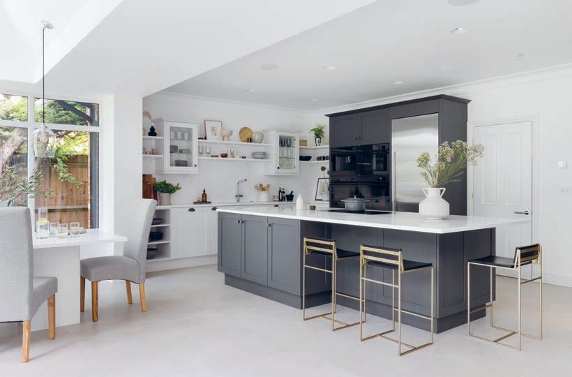 “The kitchen furniture is from Lochanna Kitchens, one of our longest standing clients, said Susan Tydesley. “The founder Paul Jenkinson has been in the kitchen industry for decades and his kitchen o erings are outstanding, in both design detail and value. For us, the skinny shaker look of Elswick was just perfect for our aesthetic of modern with a traditional twist, hence the choice of handles too from Armac Martin.