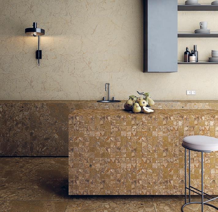 Both products are made from sintered stone and can be used for countertops, furniture, walls and oors both indoors and out.