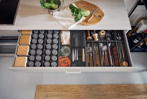 Blum presented a 22 sqm concept home on its largescale stand, demonstrating how to make the most of every millimetre through clever storage solutions. Among them was the REVEGO pocket system which neatly allows kitchens to be completely hidden from view a er use. Blum / blum.com