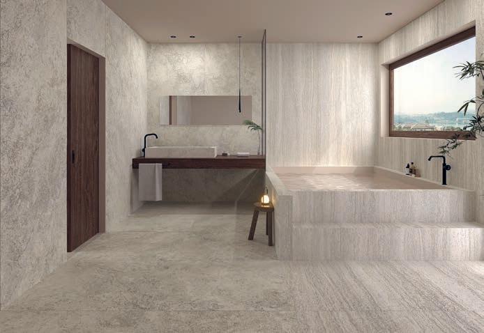 THE DISTRESSED LOOK: “From urban chic to modern farmhouse, distressed ceramic tiles were a popular appearance at this year’s show, with a range of ceramic tile designs for oors and walls in a variety of nishes and colours. Distressed tiles lend an age of authenticity to your décor, whilst o ering the amenities of a modern ceramic tile which can keep up with the demands of everyday life.”