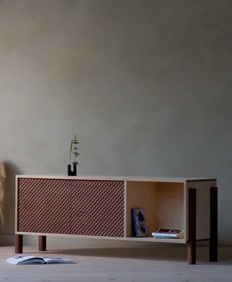 The ‘Kobi’ cabinet showcases the very best in contemporary British design. Comprising a WISA Birch Ply frame and scalloped doors in Black American Walnut, this piece highlights plywood’s timeless appeal and enduring elegance, especially as a product that not only delivers structural integrity but does it with a style and panache.