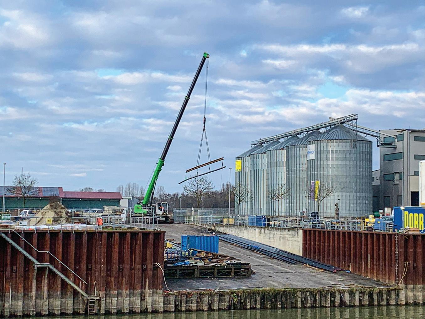 For the dredging work at Straubing port in Germany, the sheet pile wall of the port quay will have to be reinforced by additional tiebacks.