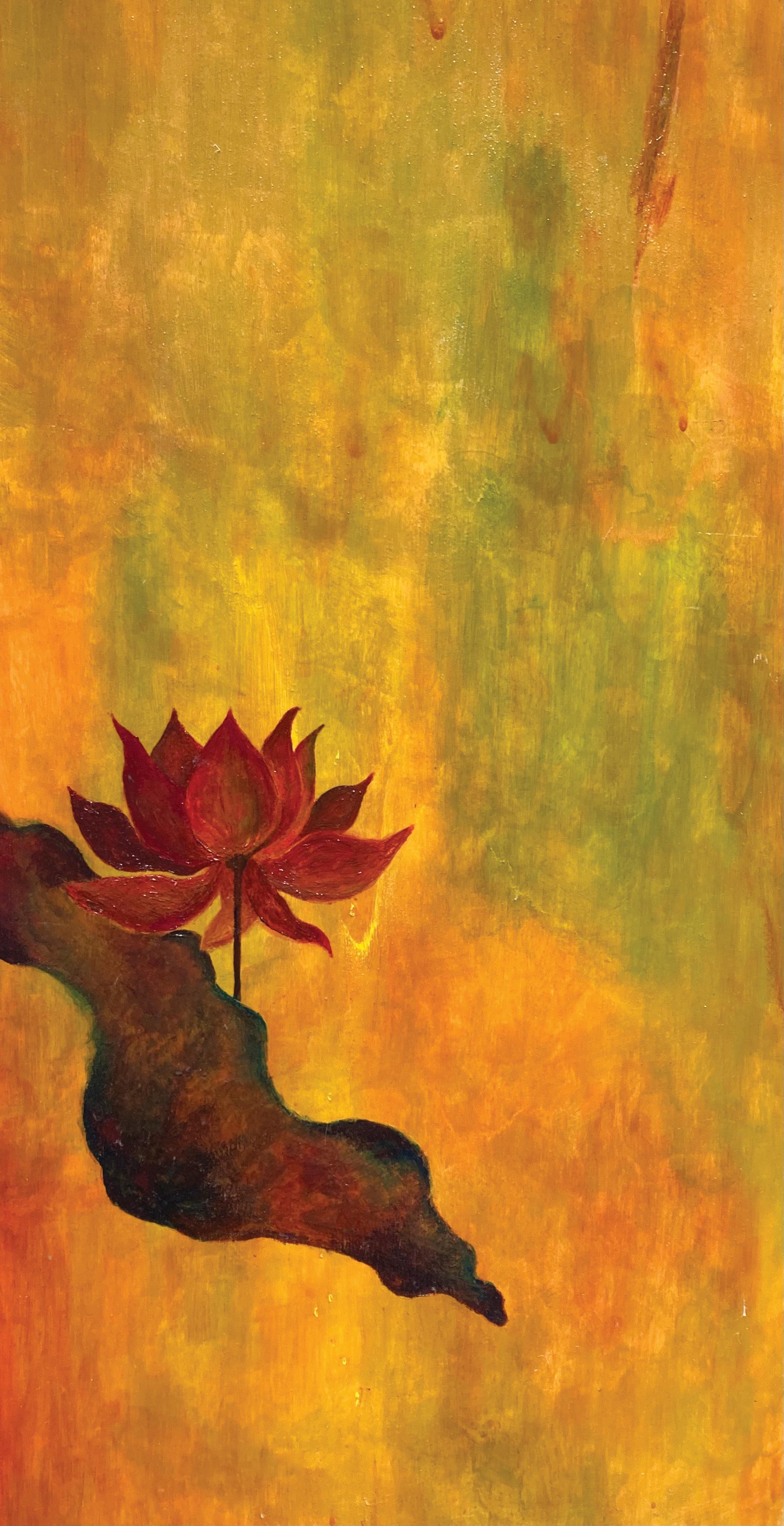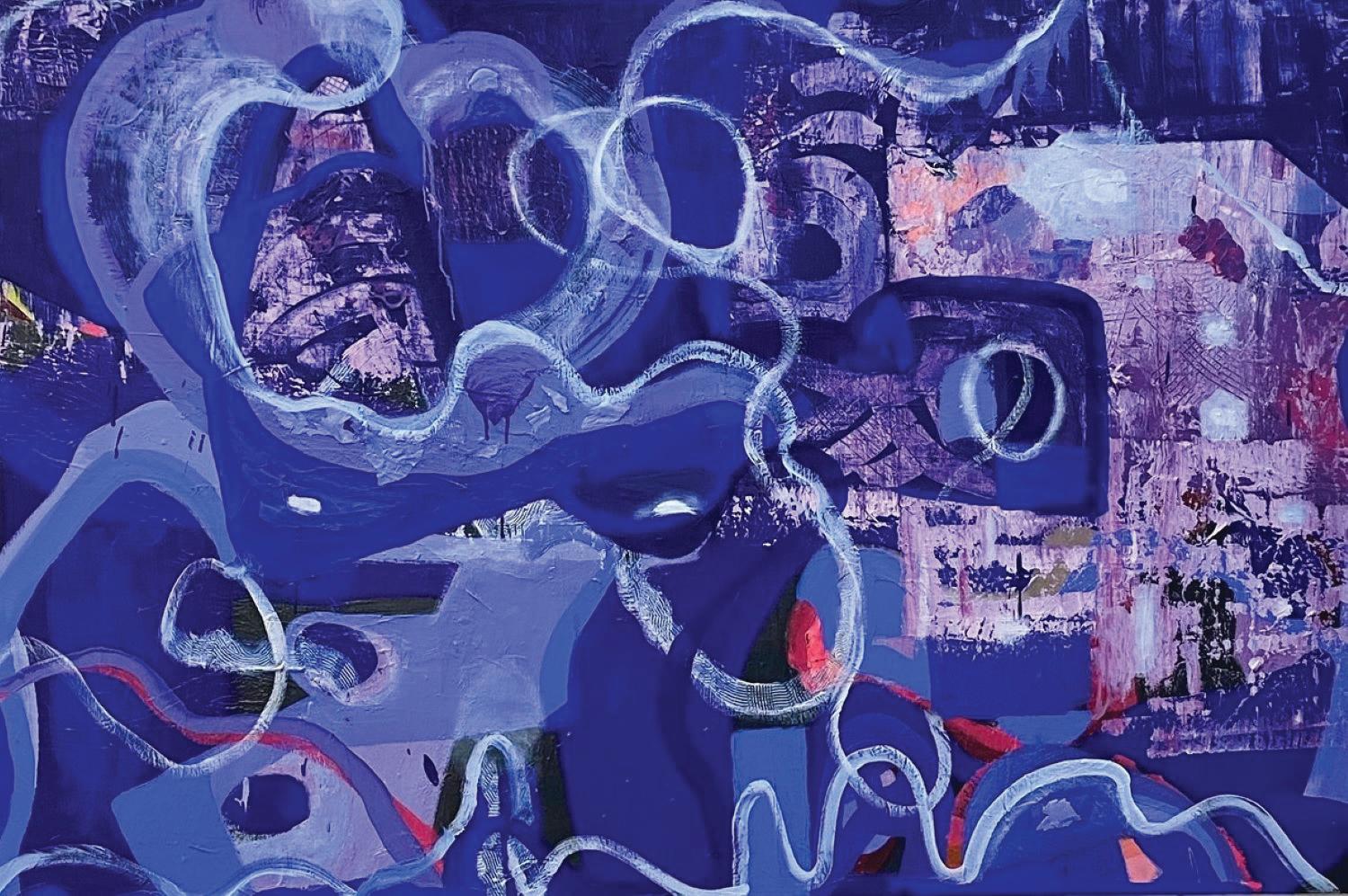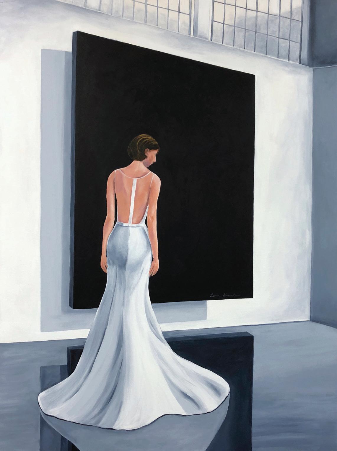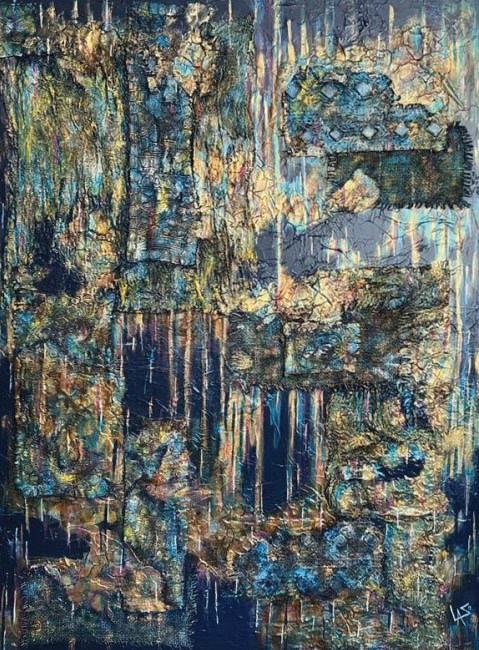 comprised of subtle palettes imbued with hints of gilded tones. Each piece implies movement, infused with buoyancy and sensation, and uses tilt and tinge to evoke a sense of hope, while employing golden glints to enchant. She leverages art to empower and engage others, including inmates, refugees, and hospice patients. Her book, “Creativity Connections: Wellness Through Artistic Expression,”