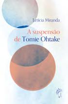 Este é o livro de estreia da artista visual e poeta brasiliense Letícia Miranda. “A suspensão de To mie Ohtake” é uma proposta de diálogo a partir da obra da artista plástica japonesa naturalizada brasileira. A ideia é unir palavra e imagem, mas também se aproximar de Tomie Ohtake, uma mu lher que viveu tanto tempo — faleceu aos 101 anos — e escolheu se estabelecer no Brasil. A escultora, pintora e gravurista Tomie Ohtake foi o motor e o norte da escrita do livro, um movimento de imer são no universo da artista japonesa: “Por causa dela e com ela que me vi escrevendo”. Entretanto, os poemas que o compõem não são uma tentativa de tradução ou legenda das obras da artista, são resultado de um processo de pesquisa de quem foi, e o que e como produziu Tomie Ohtake.