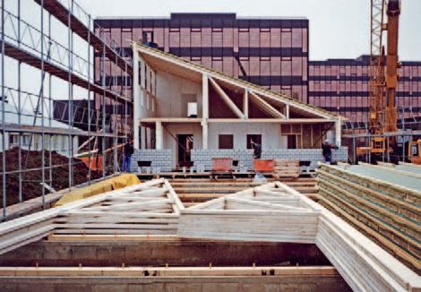 Wiederverwendung dieser Dachbinder in der Bodenstruktur der Kunstinstallation „Mehrwerk“ in der Kunsthalle Zürich in Zürich, Schweiz