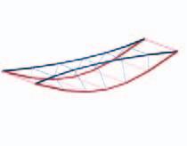 Using PGS in structural form finding results in lightweight structures with high-performance structural behavior.60, 68 The resulting structural forms are polyhedral geometries with planar faces. Therefore, not only does PGS lead to efficient structural forms, but its planarity constraint facilitates construction with flat sheet materials (Figure 2.1.4). To take advantage of the planar geometry of the reciprocal polyhedral diagrams in construction, this research will explore the structural efficiency and behavior of a lightweight, ultra-transparent glass pedestrian bridge made of planar glass sheets in compression.