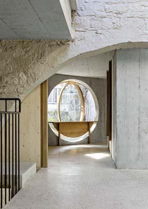 Kreisrunde Öffnungen prägen die umgebaute Remise von Buchner Bründler Architekten in Basel sowohl im Inneren als auch an den Fassaden.