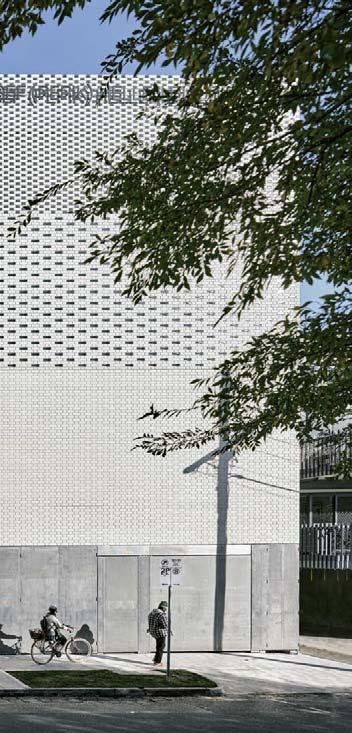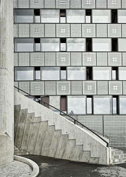 The glass block facade of the research building by Boltshauser Architekten is visually striking and anintegral part of theclimate control concept.
