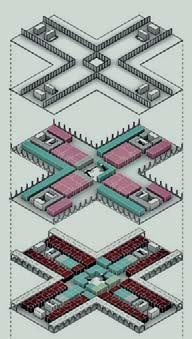 are exchangeable. Where operating rooms are located, hospital beds can be set up later. Staff areascan be added or subtracted.