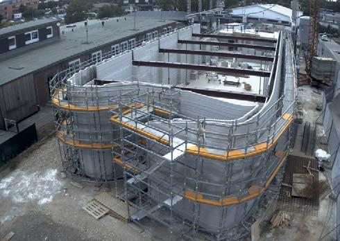 The functional modulesare prefabricated in afactory on site. The facade elements are produced by a 3Dprinter.