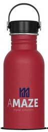 Stainless steel single wall water bottle. This 100% leak-proof bottle is suitable for cold, non-carbonated drinks. Powder coating for a premium look. Comes packaged in a gift box. Size: ø 72 x 168 mm. Content: 500 ml