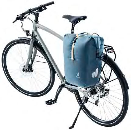 position, revealing either the BagFix quick-release system (for attaching to a bike rack) or the Contact back system with ergonomic shoulder straps. A roll-top opening with buckle closure provides quick access to contents and the removable organizer unit in the main compartment. The universal attachment options on the lid, plus a handy front pouch – for a helmet, say – are further practical organization and stow options.
