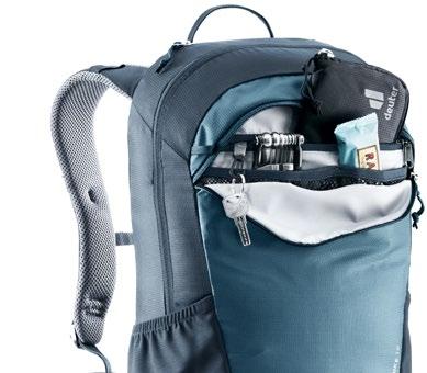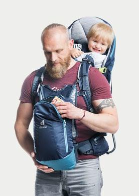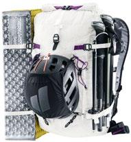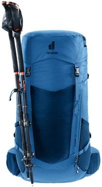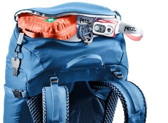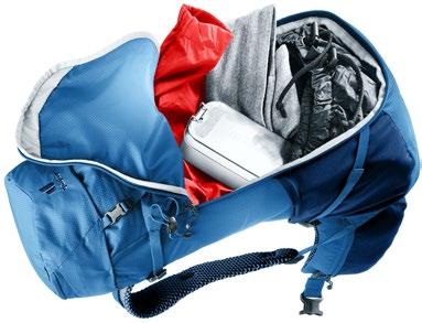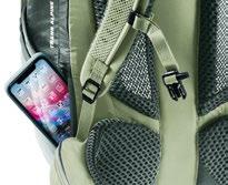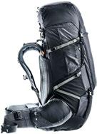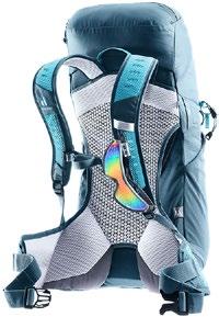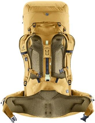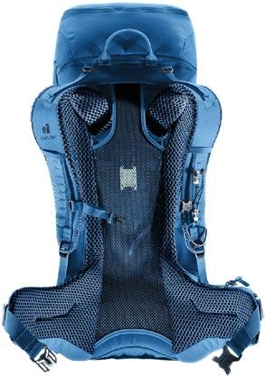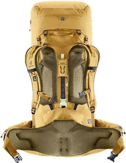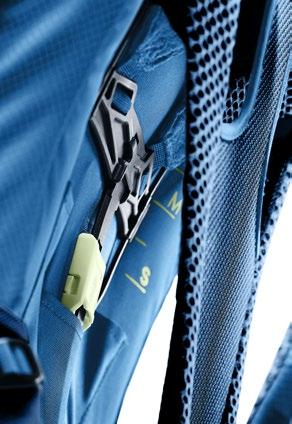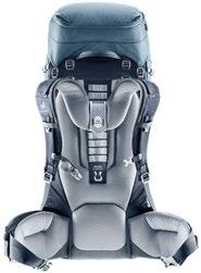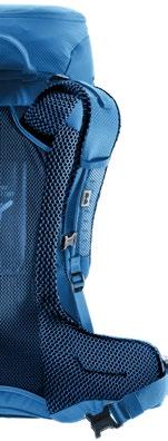 Ein optimierter Materialeinsatz macht das AircomfortRückensystem noch leichter und luftdurchlässiger. Dabei sorgen die Verbreiterung des Rückennetzes im Lendenwirbelbereich sowie das weichere Netz material nicht nur für maximale Belüftung, sondern auch für einen besonders anschmiegsamen Sitz des Rucksacks.