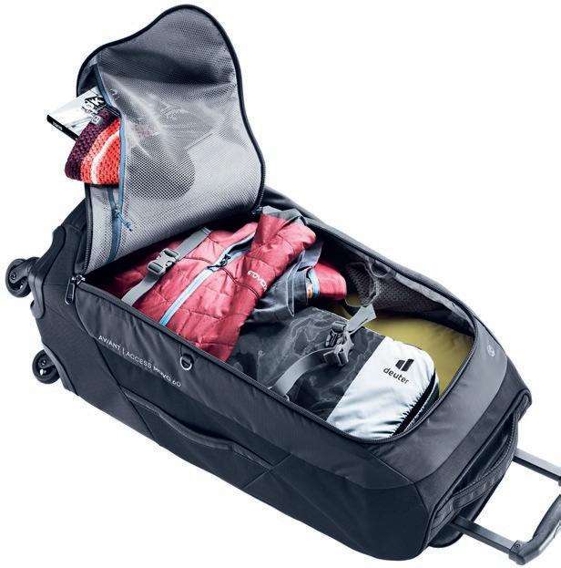 als innenliegendes Extrafach oder Volumenerweite rung genutzt werden kann. Die zusätzliche Rücken öffnung mit Reißverschluss, die herausnehmbare Organisationseinheit, das versteckte Wertsachen fach und die universelle Befestigungsmöglichkeit der Deckelkonstruktion liefern weitere praktische Verstau- und Organisationsmöglichkeiten.