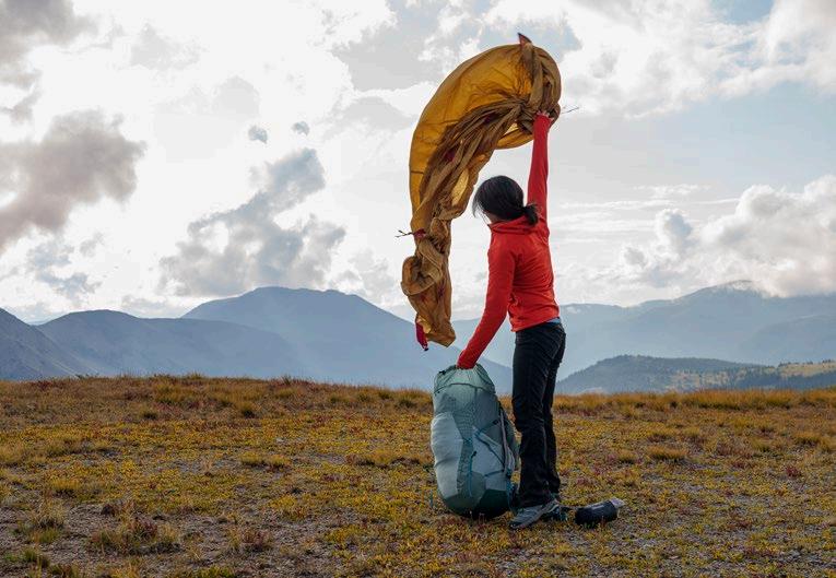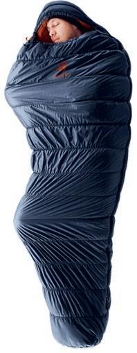 Ein weiteres Highlight für Outdoor-Liebhaber*in nen, die bei ihren Touren Wert auf einen bequemen Schlafsack mit viel Bewegungsfreiheit legen, dabei aber nicht auf Leichtigkeit und Performance ver zichten wollen: der Exosphere. Er bietet volle Bewegungsfreiheit dank elastischer ThermoStretch-Konstruktionsnähte. Diese lassen die komplette Schlafsack-Konstruktion um 25 % in der Breite dehnen und schmiegen sich gleichzeitig hautnah an. Das verringert die zu erwärmende Luft zwischen Körper und Schlafsack und erleichtert das Warmhalten des eigenen Körpers. Zusätzlich sorgt die 360°-Füllung in jeder Schlafposition für optimale Komfort-Temperatur. Die aufwendige Schindelkonstruktion des Füllmaterials verhindert zudem die Bildung von Kältebrücken und sorgt durch die mehrfache Überlappung für perfekte Isolation. Und wenn einen das alles noch nicht mit gutem Gewissen schlafen lässt, dann spätestens