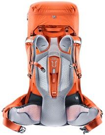 Am leichtesten lassen sich hohe Las ten komfortabel tragen, wenn Ruck sack und Träger eine Einheit bilden. Hier setzt unser Aircontact-Prinzip an: Das Tragesystem liegt direkt am Körper an, das Gewicht wird nah am Körperschwerpunkt gehalten. Das garantiert volle Kontrolle und effektive Lastübertragung. Gleich zeitig sorgen die atmungsaktiven Aircontact-Rückenpolster für spürbar angenehme Belüftung durch einen Pumpeffekt bei jeder Bewegung.