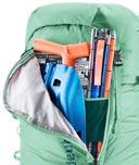schnelle und einfache Handhabung - auch mit Handschuhen und ohne Absetzen des Rucksacks. Wem das noch nicht reicht, kann zusätzliches Gewicht durch das Entfernen des Rückenschaums oder der Skifixierung sparen. Apropos Speed: Dank großer Öffnung des rundum laufenden Reiß verschluss-Hauptfachs und leicht zugänglichem Bodenfach mit Klettverschluss ist ein schneller Zugriff auf Sicherheitsausrüstung, Felle, Harschoder Steigeisen auch ohne das Absetzen des Rucksacks möglich.