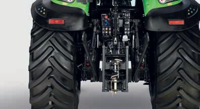 die dafür sorgt, dass das Hubwerk bei der Kurvenfahrt nicht mit Zugpendeln oder der Zapfwellen kollidieren. Das ist besonders hilfreich bei der Fahrt mit Anhängern oder Anbaugeräten, die an der K80-Kupplung befestigt sind, die bis zu 4 t Stützlast trägt. Hydraulische oder automatische Stabilisatoren gewährleisten eine sichere Steuerung des Anbaugeräts. An der Front kann der Traktor kann mit einem Frontkraftheber mit Lageregelung oder sogar mit einer Entlastungsregelung ausgestattet werden, wobei stets eine Hubkraft von 5450 kg zur Verfügung steht.