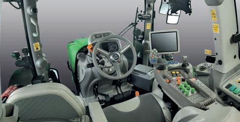 Die MaxiVisionPro-Kabine ist so konzipiert, dass sie eine ruhige, komfortable und produktive Arbeitsumgebung bietet. Mit der pneumatischen Kabinenfederung, gepaart mit hochwertigen Sitzen, sorgt sie für höchsten Fahrkomfort. Große Panoramafenster bieten eine klare Rundumsicht auf die Umgebung des Traktors, während ein separates Heckfenster die Sicht auf den Bereich des Heckkrafthebers verbessert. Große Rückspiegel und bis zu vier Außenkameras verbessern die Sicht noch mehr. Hochwertige Materialien tragen zu einer hellen, einladenden Kabinenatmosphäre bei.