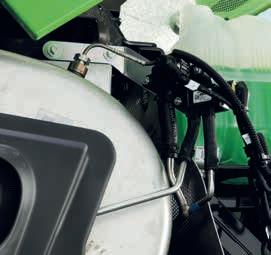 >Hydrauliksystem mit Load-Sensing-Pumpen mit bis zu 210 l/min maximaler Leistung und 90 l entnehmbarer Ölmenge für Anbaugeräte.