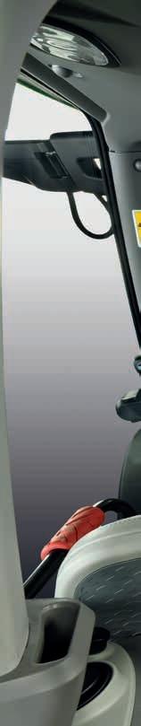 grands et compter jusqu'à 4 caméras extérieures. L'utilisation de matériaux de haute qualité et de très grandes fenêtres crée un environnement de travail agréable, lumineux et accueillant. Différentes options de support permettent l'installation solide et rapide des boîtiers de contrôle des outils et des tablettes les plus courantes. Un nouveau frigo actif permet de garder snacks et boissons au frais pendant les plus longues journées de travail. Tandis qu'un maximum de 23 phares de travail à LED permettent de rester pleinement concentré même la nuit. Et avec le nouveau système audio premium 4.1, l'opérateur peut écouter ses chansons favorites avec encore plus de plaisir.