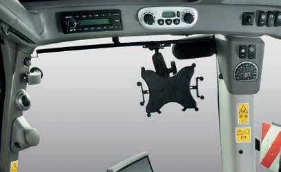 The use of high quality materials and very large windows creates a pleasant, luminous and welcoming work environment. Various bracket options allow a robust and fast installation of the control boxes for implements and the most common tablets. A new active cooling box keeps snacks and drinks cool during the longest working day. While up to 23 LED work lights ensure to stay fully focused even at night. And with the new 4.1 premium sound system the operator can listen to their favourite songs with even greater pleasure.