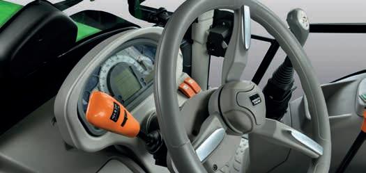 Każdy, kto wchodzi do Serii 5D Keyline natychmiast to czuje: to jest dobre miejsce do pracy. Szerokie drzwi, jasna, przyjazna atmosfera oraz widoczność we wszystkich kierunkach na 360 stopni ułatwiają efektywną pracę. Typowe dla DEUTZ-FAHR rozwiązanie to przejrzyste oznaczenie kolorystyczne wszystkich elementów sterowniczych oraz ich rozmieszczenie dopasowane do częstotliwości wykorzystywania.