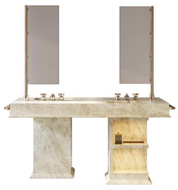 I TRE MOBILI-LAVABO MY LOVE WATER VANITY CONDIVIDONO UNO STILE UNICO E IMMEDIATAMENTE RICONOSCIBILE, DECLINATO IN BASE ALLE DIVERSE ESIGENZE DI SPAZIO DELL’ABITARE CONTEMPORANEO. INTERAMENTE REALIZZATO IN GRES PORCELLANATO EFFETTO MARMO, CREATO CON L’INNOVATIVA TECNOLOGIA ALL-OVER, OGNI MODULO INCORPORA LAVABI, PORTA-ASCIUGAMANI, MENSOLE E SPECCHI CHE RUOTANO DI 90°.