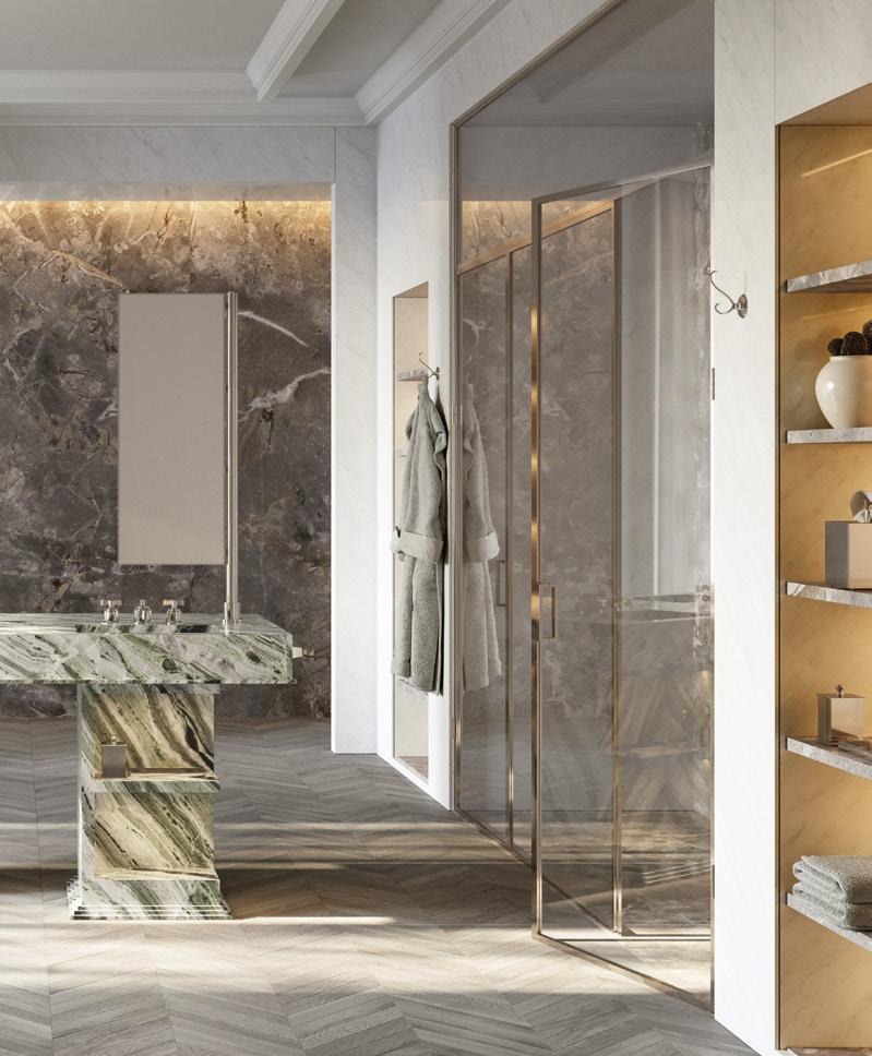 THE THREE MY LOVE WATER VANITY UNITS SHARE A UNIQUE AND IMMEDIATELY RECOGNISABLE STYLE, TAILORED TO THE DIFFERENT SPACE REQUIREMENTS OF CONTEMPORARY LIFESTYLES. MADE OF 100% MARBLE-EFFECT PORCELAIN STONEWARE CREATED WITH THE NEW ALL-OVER TECHNOLOGY, EACH MODULE INCORPORATES WASHBASINS, TOWEL RAILS, SHELVES AND MIRRORS THAT ROTATE 90°.