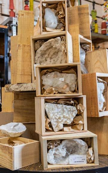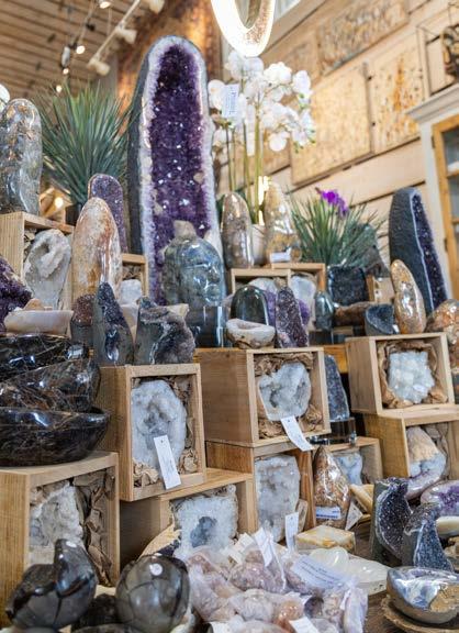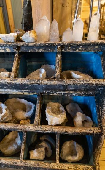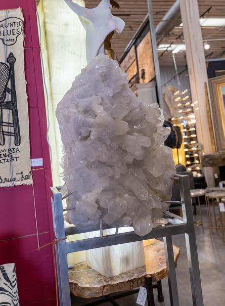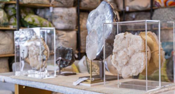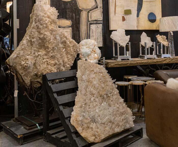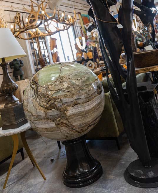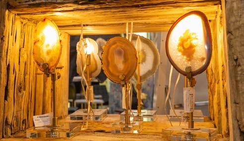 In addition to the onyx light fixtures, there were many minerals and gemstones could also find polished fossil bowls, and many agate side tables as well.