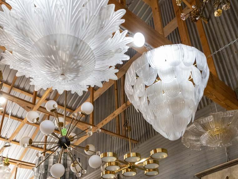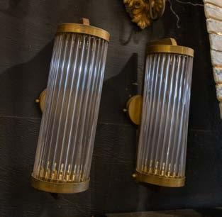 There was a wide range of fixtures and lamps available. Large chandeliers featuring toned glass lamps. Brass was the dominant hardware finish. And there were the porcupine needle lamp shades.