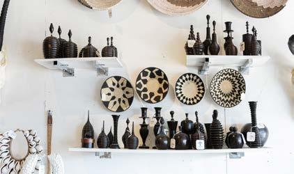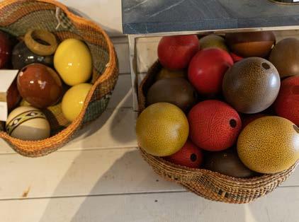woven baskets, decorated emu/ostrich eggs, porcupine quills, and orsculptures and brass trinkets.