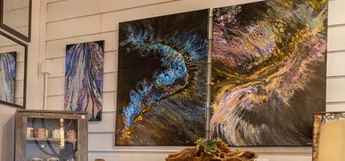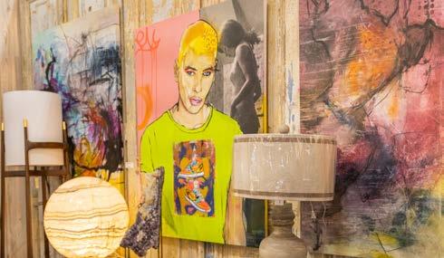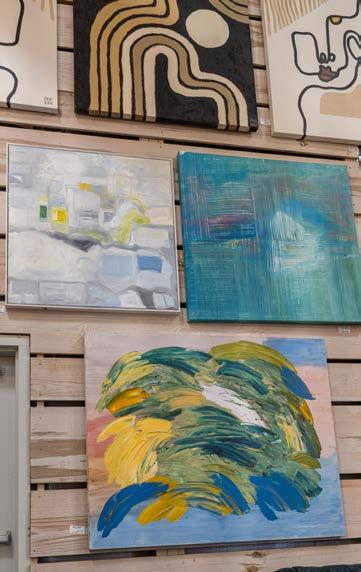 A variety of paintings and mixed media wall art could be found. Most of them ranged widely from muted natural earth tones, to vinbrant neon pops of color.