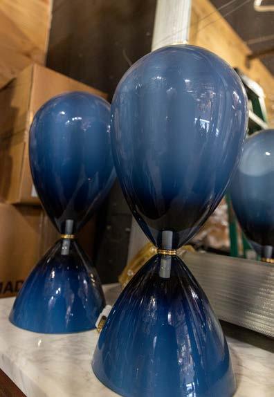 featuring clear textures or cloudy white glass. Transparent pink and blue many onyx towers and globes. The most unique item may have been