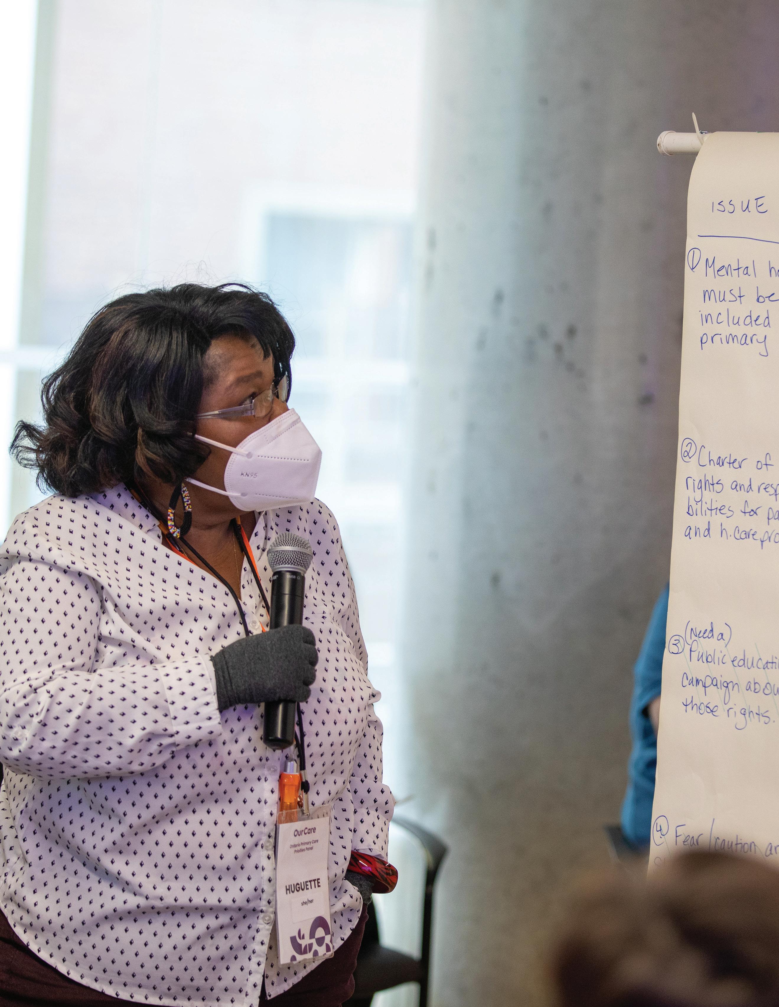 Ces personnes souhaitent recevoir des soins en temps opportun et dans le cadre d’une relation à long terme avec un médecin ou une équipe. Elles veulent un système organisé autour du bien-être et non de la maladie, où les gens ont la possibilité de prendre leur santé en main et d’accéder facilement à leur propre dossier médical. Elles réclament un système exempt de racisme et de discrimination, accessible quels que soient les revenus, la langue, les capacités ou la géographie, et qui soit imputable aux communautés que le système est censé servir.