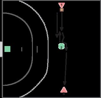 To spillere skal fra egen tremeterlinje spille bolden frem til scoring i modsatte mål uden at drible. En forsvarer starter i målfeltet og jagter de kontraløbende spillere og forsøger at komme imellem og hindre en aflevering, før de er nået til afslutning.