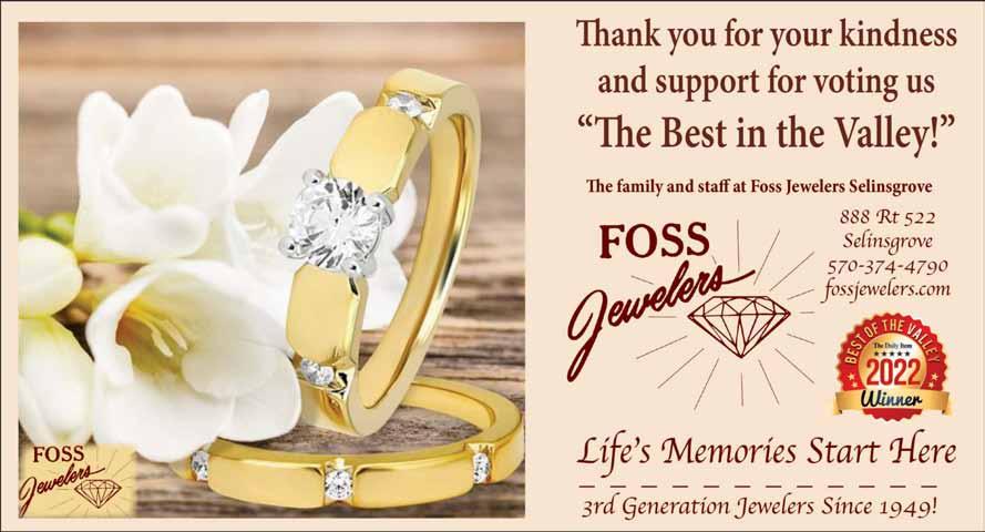 foss JEWElErs, Selinsgrove Black Dog Jewelers, Lewisburg Fedder’s Jewelers, Milton Island Park Jewelers, Sunbury Williams & Williams, Lewisburg
