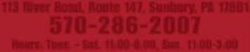 Amato’s Pizza & Family Restaurant, Northumberland Breaking Bread Company, Milton Dor-Day’s Sub Shop, Lewisburg Marlin’s Sub Shop, Sunbury