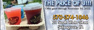 gram’s EatEry, Lewisburg Good Wil’s Restaurant, Montandon Grindstone Coffee Shop, Northumberland Jay’s Tiffany, Sunbury Lisa’s Milltown Deli, Milton