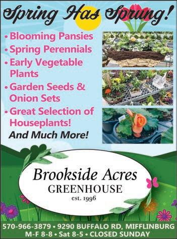 22 HOMES / SPRING HOME IMPROVEMENT | APRIL 2024 LewisburgOf ce LawtonInsuranceAgency 57ReitzBlvd |Suite101 Lewisburg,Pennsylvania17837 Phone:(570)524-4200 Mif inburgOf ce LawtonInsuranceAgency 93ChestnutSt Mif inburg,Pennsylvania17844 Phone:(570)966-3145