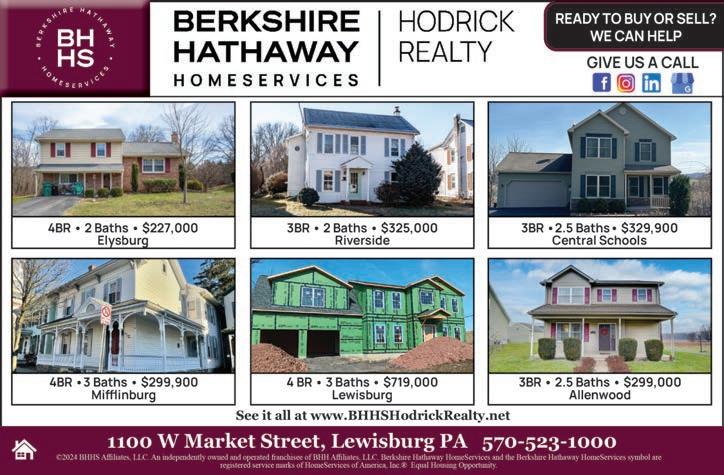 4 HOMES / SPRING HOME IMPROVEMENT | APRIL 2024 PRISTINE 3BED,2.5 BATH CONDO nestled in Wild ower Village andclosetoeverything! NewA/Csystemand highqualitycustomblinds e1st oorhas alargelivingroom, kitchenwithquartzcountertops andappliances,diningroom overlookingthe outdoor patio, 1st oorowner’s suite, laundry andhalfbath. e2nd oorhas alargebonus area,2bedrooms andafullbath.Noexteriormaintenance! Call Ruth Lewisburg$359,900(20-96539U) THIS5,500SF+VICTORIANHOME is theperfect blendof vintagecharm &modernconvenience.Modernizedkitchen withgranitecountertops &arefurbished1800’sGlenwood cast iron cookstove,plusapantry. esunroomwillbeone of yourfavoritespots.Finished3rd oorprovides theperfect recreation area,plusprivate guestquarterswiththe 6th bedroom &bath. Landscaped doublelotwithalarge patio& a 1car garage/carriage house. Call Lise. Lewisburg$849,000(20-94003U)