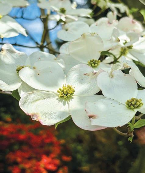 Sunlight drapes tree blossoms at Keithan’s Bluebird Garden in Sunbury this spring.