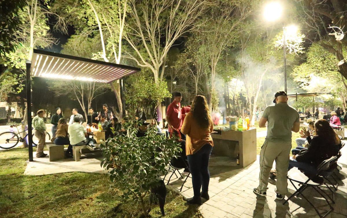 locación de otros seis asadores y palapas para la convivencia de las familias, pasto con sistema de riego automatizado; se colocaron nueve postes, aparte de la iluminación que ya existía y de la que se repuso todo el cableado, además de colocar un sistema de luz escénica.