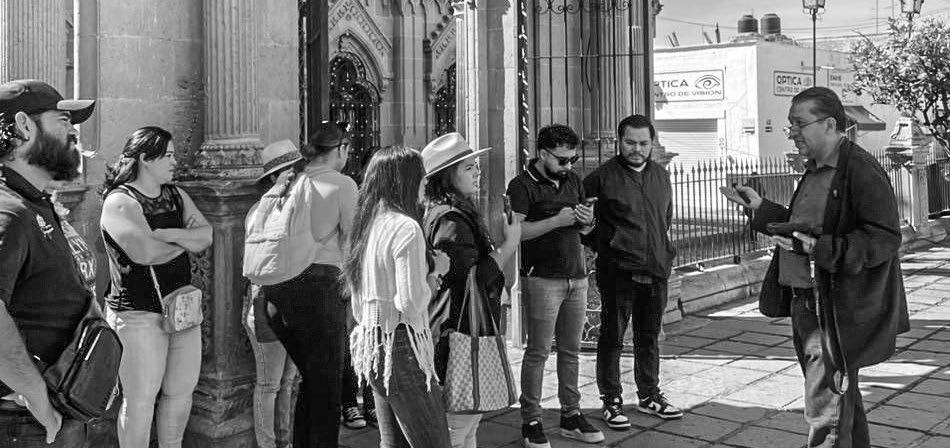 Este jueves por la mañana, el cronista adjunto de Jerez, Héctor Manuel Rodríguez Nava, realizó un interesante recorrido con estudiantes de la Maestría en Artes del Instituto Calmecac por el Santuario de Nuestra Virgen de la Soledad, abordando el análisis desde un enfoque iconográfico e iconológico. Cabe destacar que la iconografía es el estudio de los símbolos por separado, mientras que la iconología se enfoca en la interpretación del conjunto de símbolos. Es decir, la iconografía es más descriptiva y la iconología más analítica.